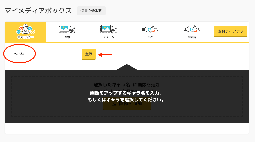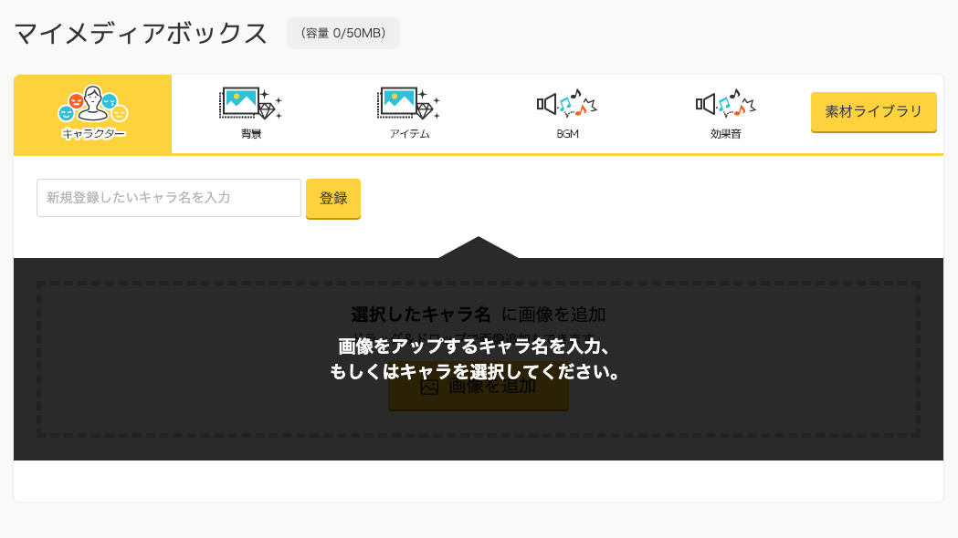 続いて、実際にメディアボックスに素材を登録してみましょう。