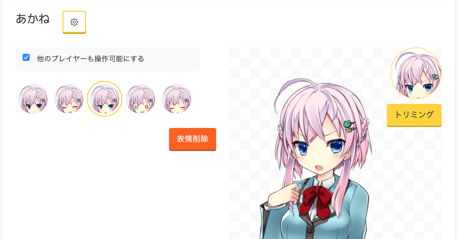 キャラクターの表情部分は自動的にくり抜いてサムネイルとして使用されます。