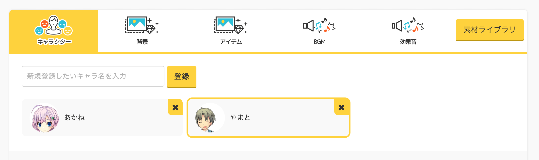 キャラクターを登録する
