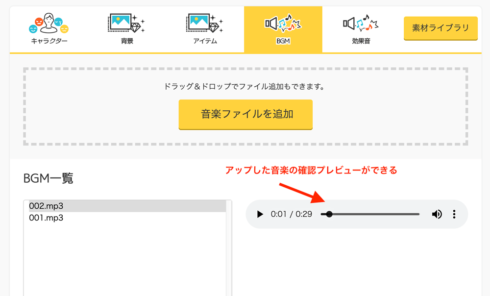 対応ファイルは mp3 ogg m4a 形式です
