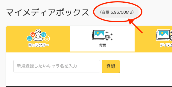 1つのメディアボックスに登録できるファイルサイズの合計は50Mです。