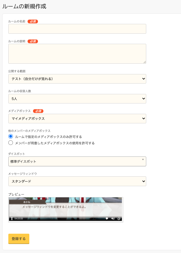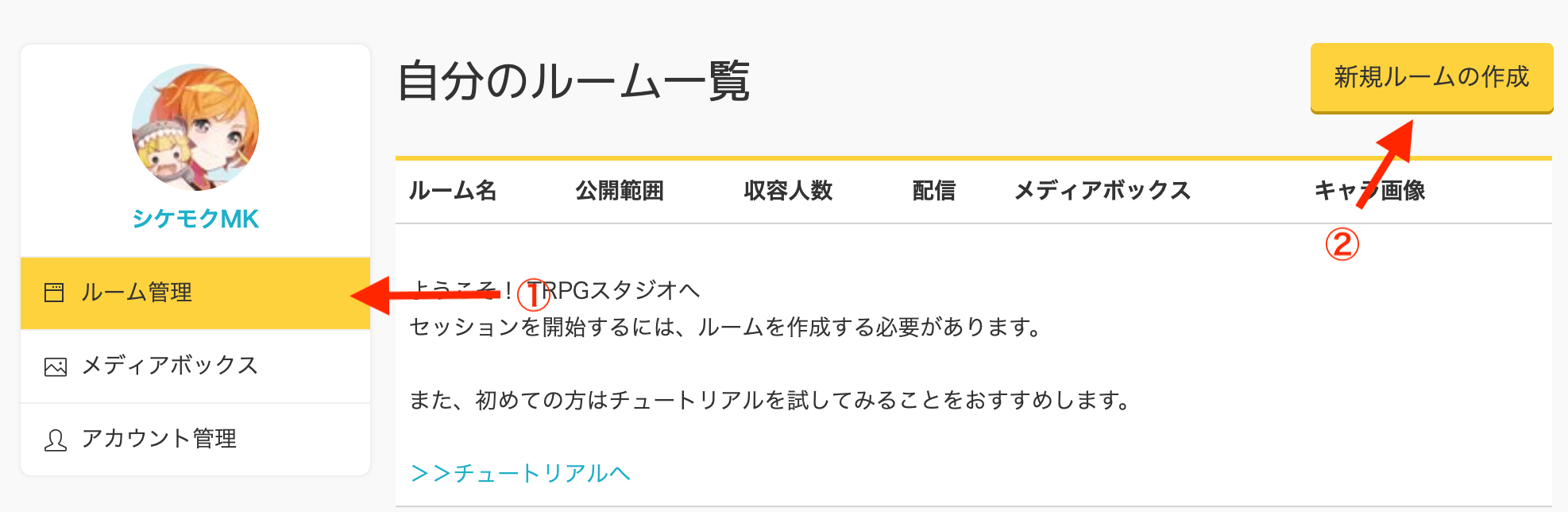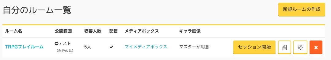 「ルーム」とはセッションを遊ぶための部屋だと思ってください。