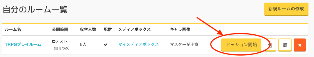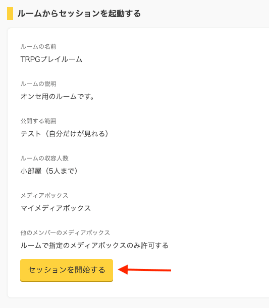 その部屋が遊べる状態にすることを「セッションを起動する」といいます。