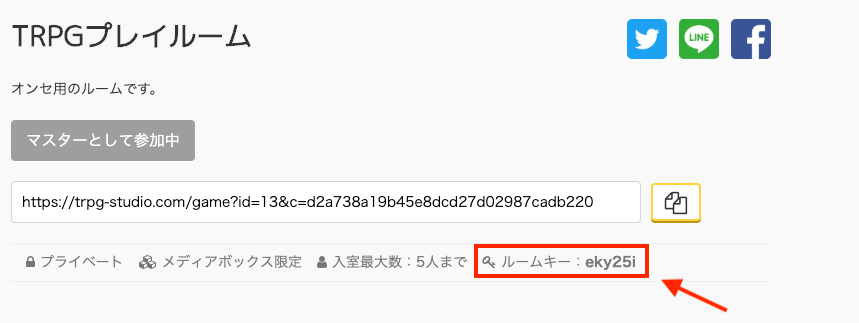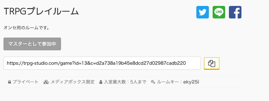 実際にセッションを行う時は「テスト」だと他のプレイヤーが入室できませんので、本番前に編集するのを忘れないようにしましょう。