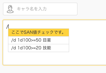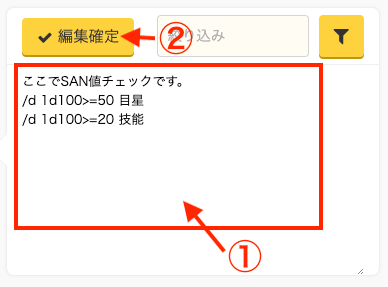 続いてよく利用するワード、ダイス、判定を行毎に記述したテキストを貼り付けてください。