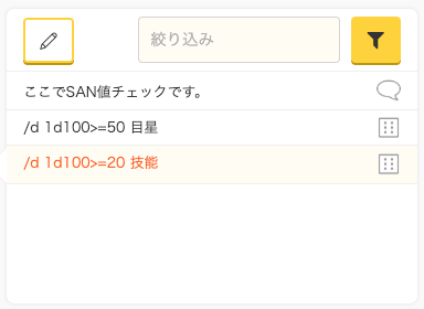 GM・PLが予めセッションでよく使うワード・ダイス・判定等を登録しておいて。好きなときに呼び出せる機能です。