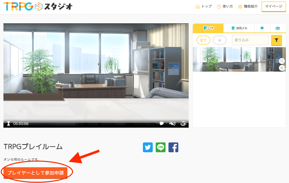 画面下の「プレイヤーとして参加申請」ボタンを押して下さい。