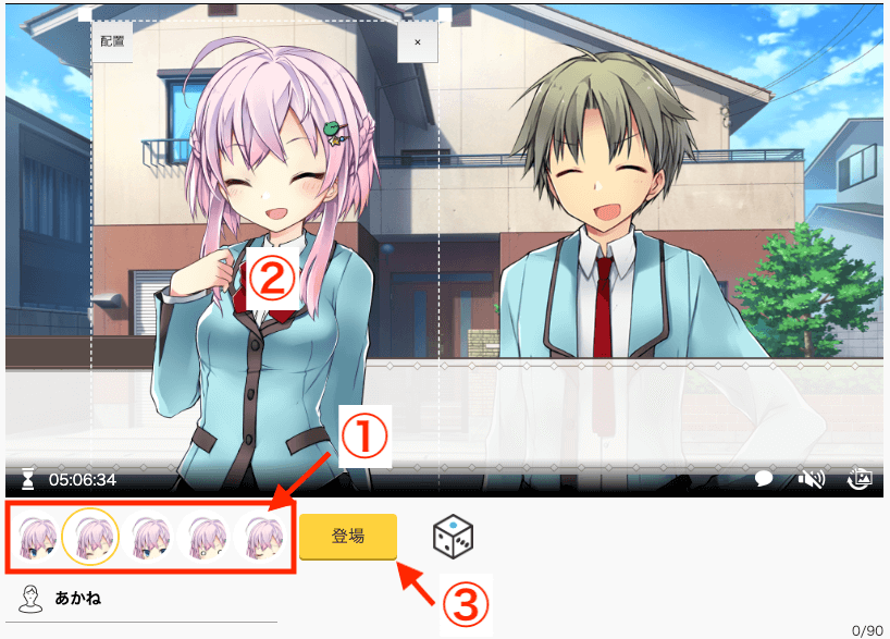 登場させたい位置がきまったら、最後に③「登場」ボタンをクリックします。