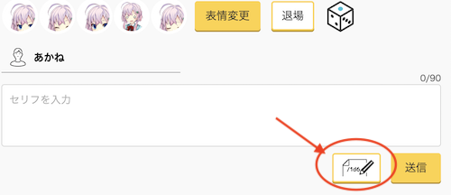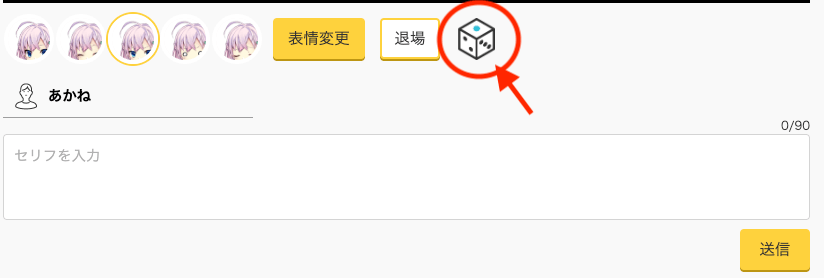 ダイスを振ったキャラを明示したい場合は、キャラ選択して名前欄にキャラクター名が入った状態で ダイスを振って下さい。そうすることで、ログやメイン画面の演出で、どのキャラクターがダイスを振ったのか演出が追加されます。