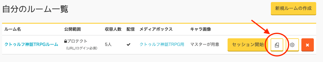 さっそく、出力してみましょう。ルーム一覧のログアイコンをクリックして下さい