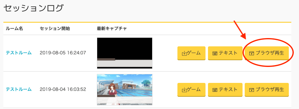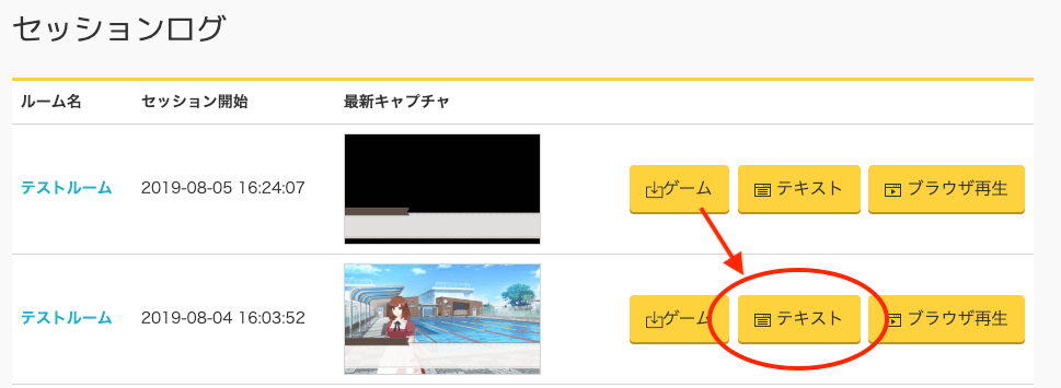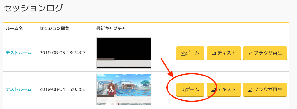 それでは、セッションログ一覧から「ゲーム」をクリックします。