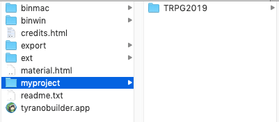 ティラノビルダーをインストールしたフォルダに「myproject」というフォルダがあります。