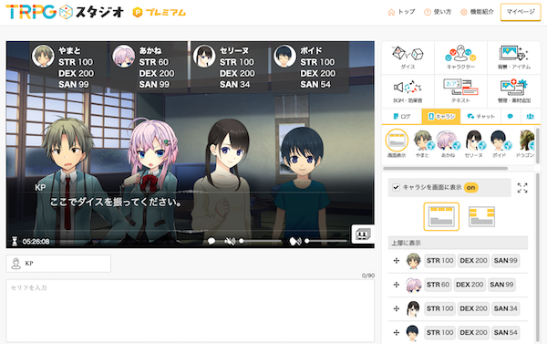 GMはセッションを立ち上げると、キャラクター全員分キャラシが設定されているのを確認できます。
