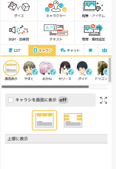 (注)キャラシが未作成のキャラクターは共有メモが自動的に配置されます