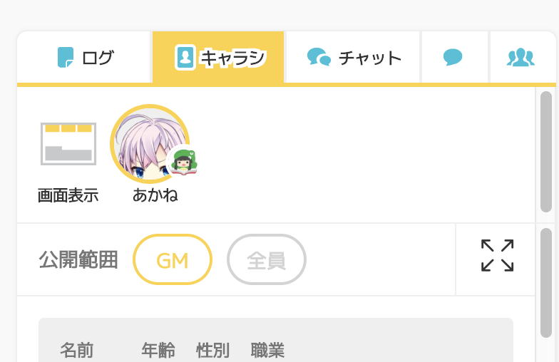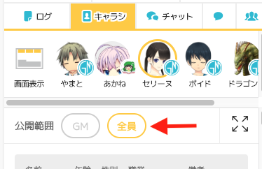 - ただし、PLは担当キャラ以外でも公開範囲が「全員」になっているキャラシは閲覧できる