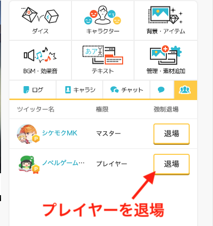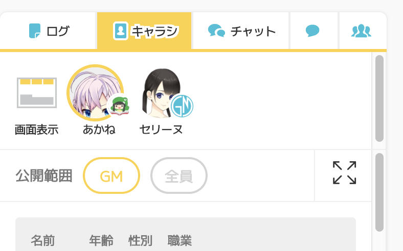 GMはすべてのキャラシを最初から確認できますが、PLは自分の担当キャラとGMが許可したキャラシだけ見ることができます。