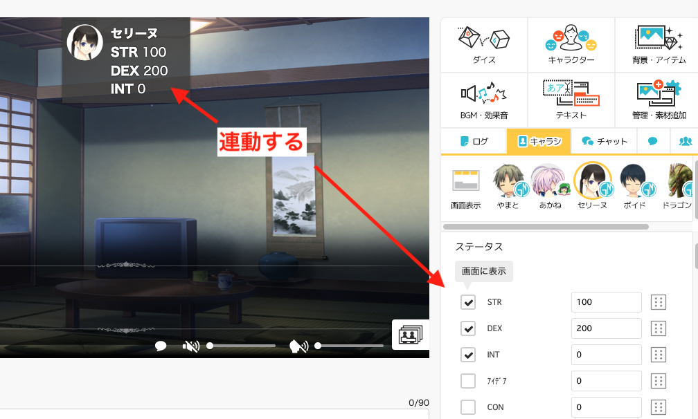 メディアボックスで定義したキャラシは、そのままセッションに持ち込むことができます。
