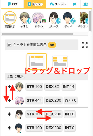 また、キャラや項目の表示順は画面表示タブで細かく制御することができます。